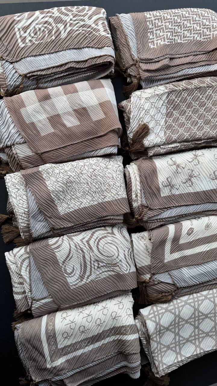 شال نخ اسلپ چاپی پلیسه کرم موکا(تکفروشی کد 874)