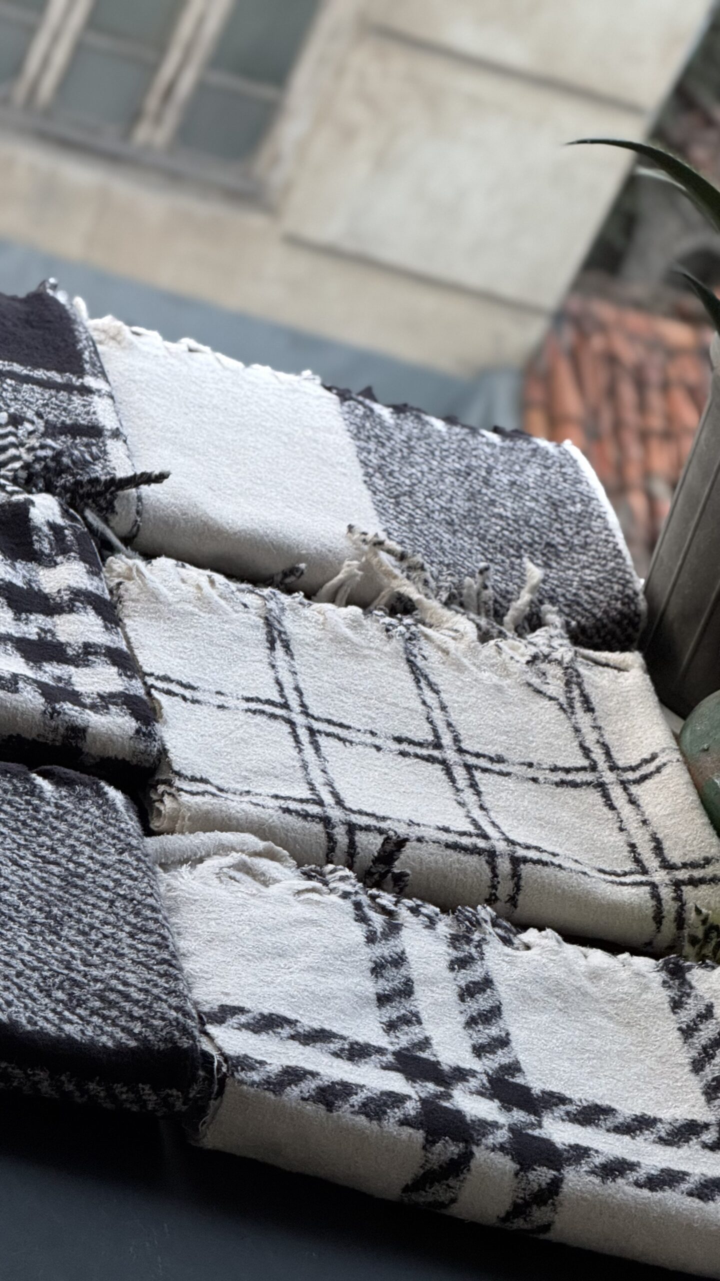 مینی اسکارف نخی پاییزه طرح مشکی سفید(تکفروشی کد 1030)