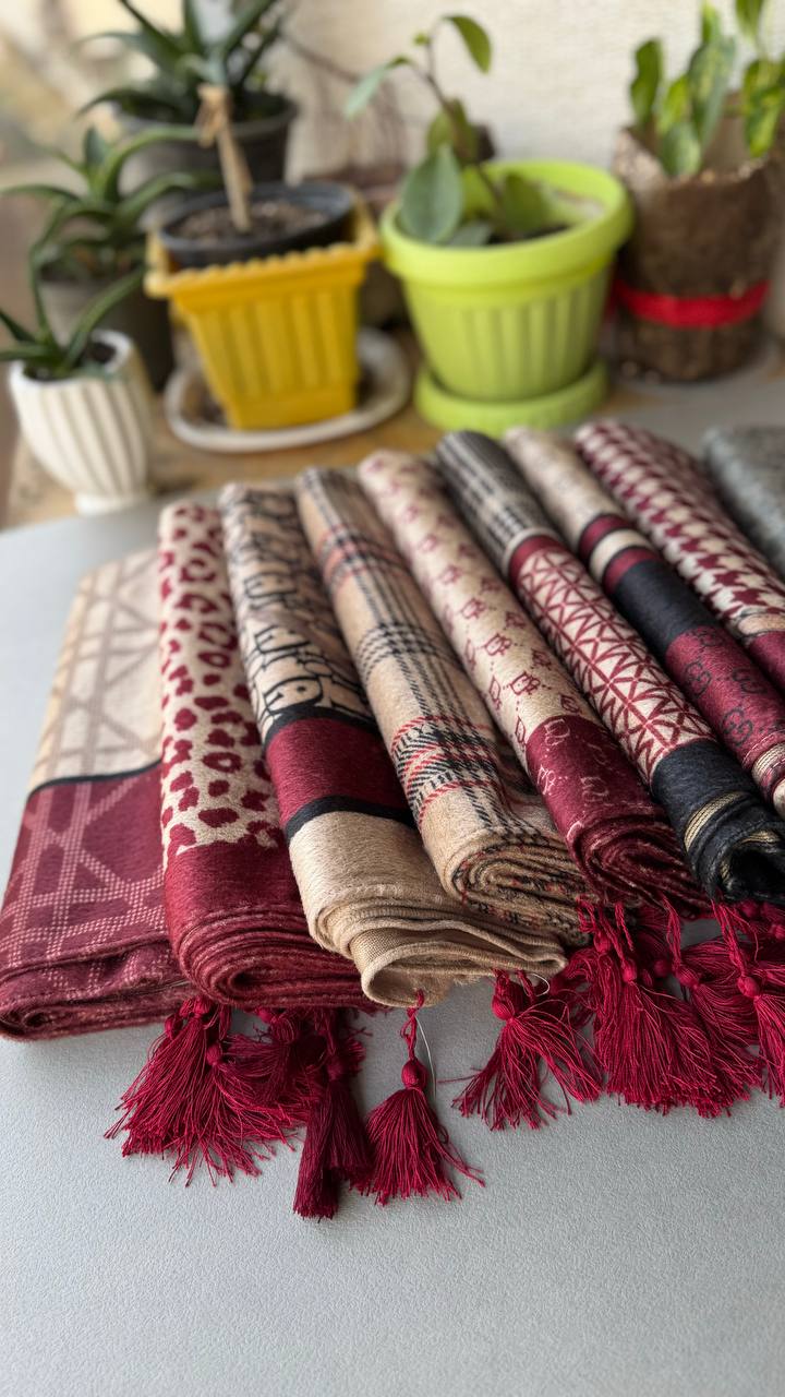 شال موهر جناقی طرح سلین دو رو نوار لمه(تکفروشی کد 1008)