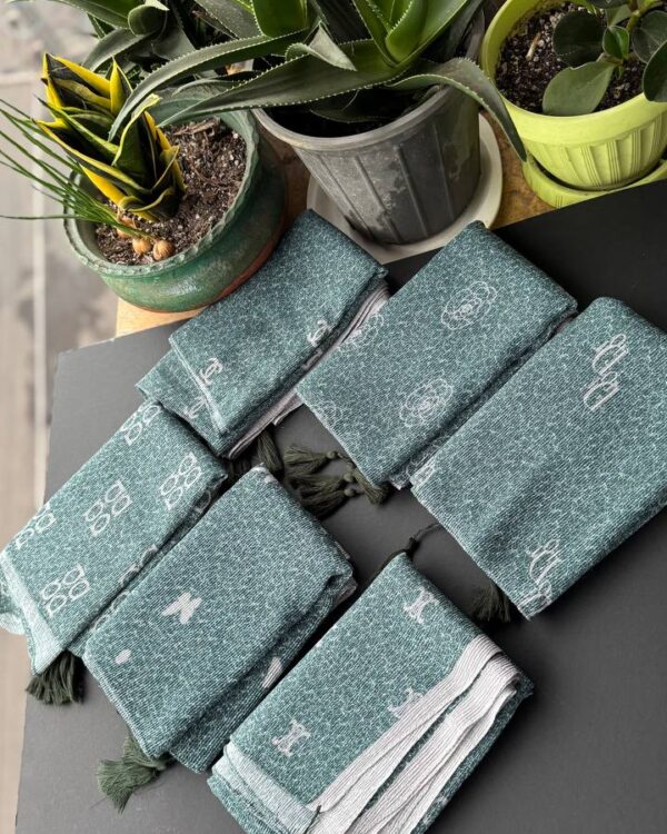 شال پلیسه گلدار سبز چهار فصل منگوله دار برشکا نخی (تکفروشی کد 1092)