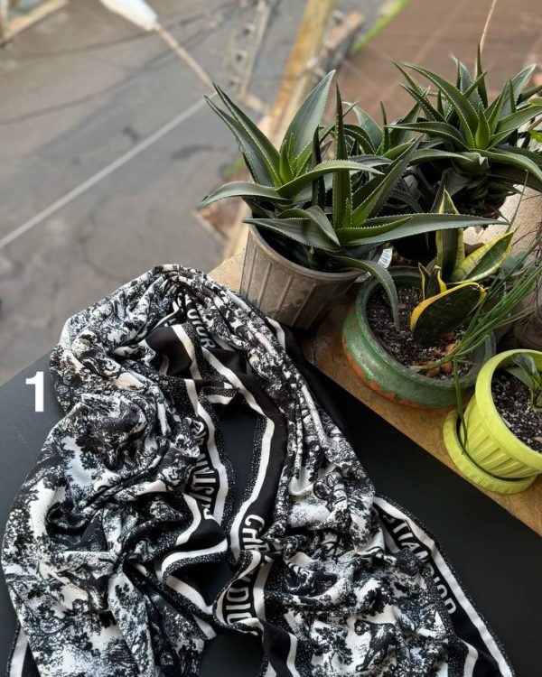 شال موهر کیریستین دیور نوشته شده دور دوخت پاییزه(تکفروشی کد 1046)