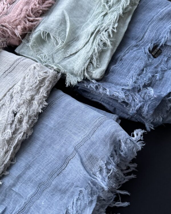 شال نخ فلورانس وارداتی دور ریش خط دار(جین 12 تایی کد 819)