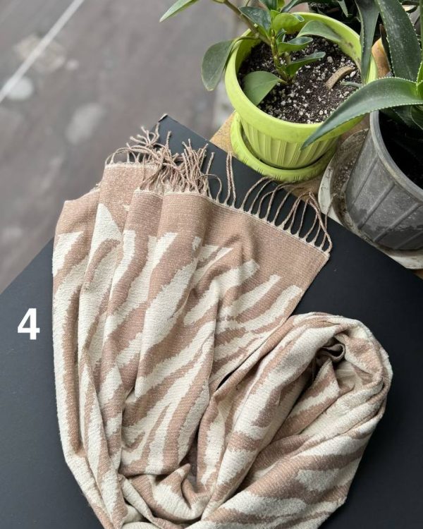 شال موهر کرم سفید دو رو ریشه دار گرم بالا عمده (جین 6 تایی کد 989)