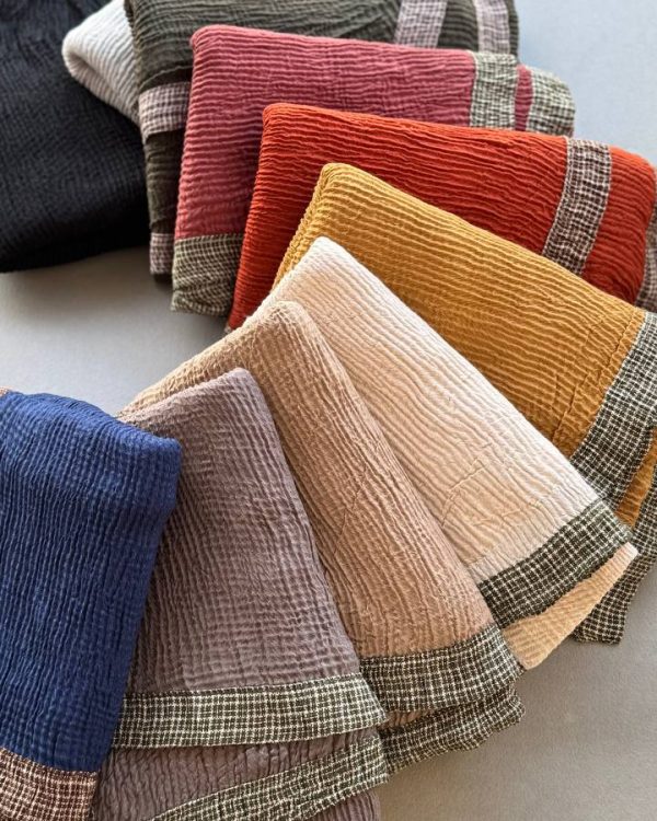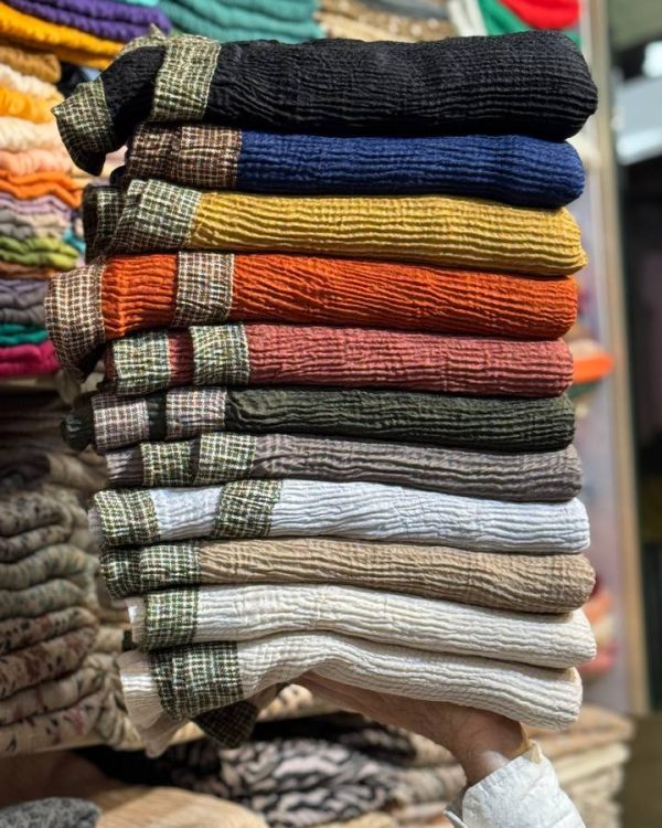 شال برشکا پلیسه نخی چهار فصل دور کنفی عمده(جین 14 تایی کد 1057)