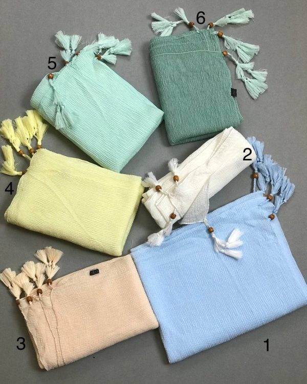 شال برشکا نخ کرپ منگوله چوبی پلیسه (تکفروشی کد 603)