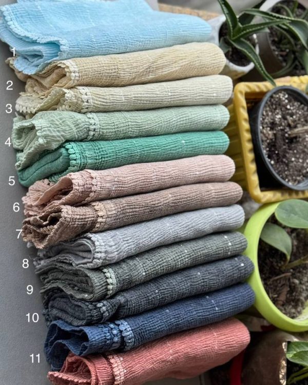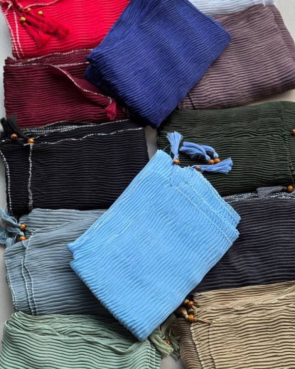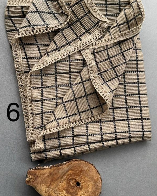 شال برشکا نخ کرپ منگوله چوبی پلیسه (جین 12 تایی کد 604)