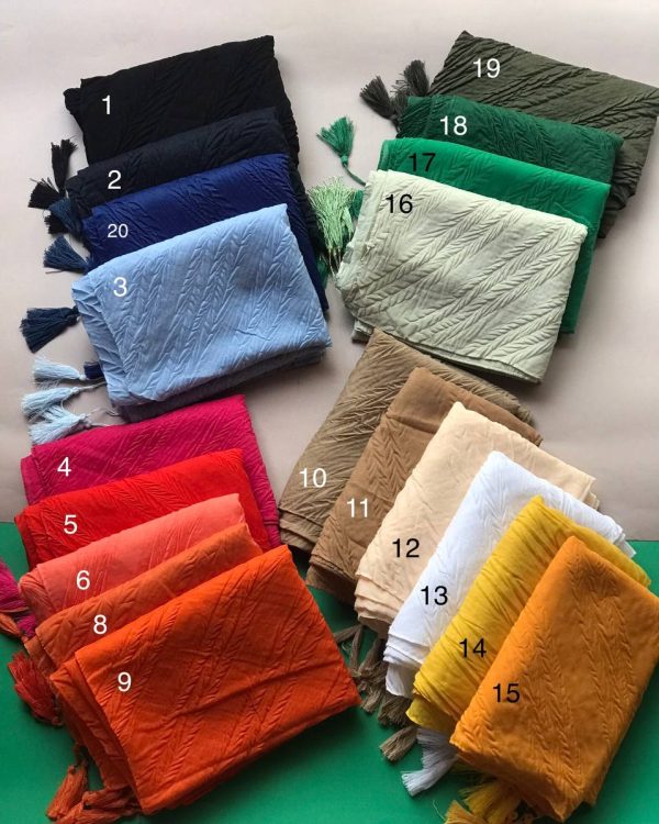شال پلیسه سنگشور پایین ریش و منگوله نخ پنبه(جین 20 تایی کد 920)