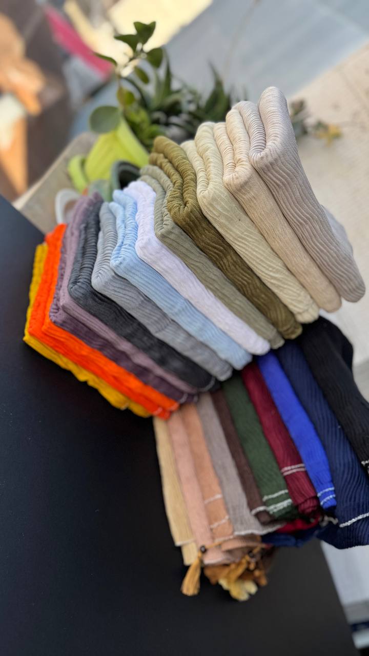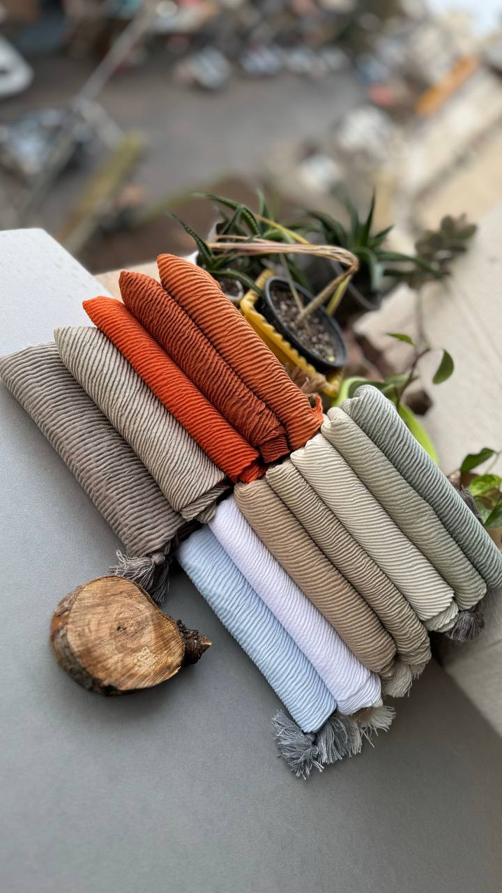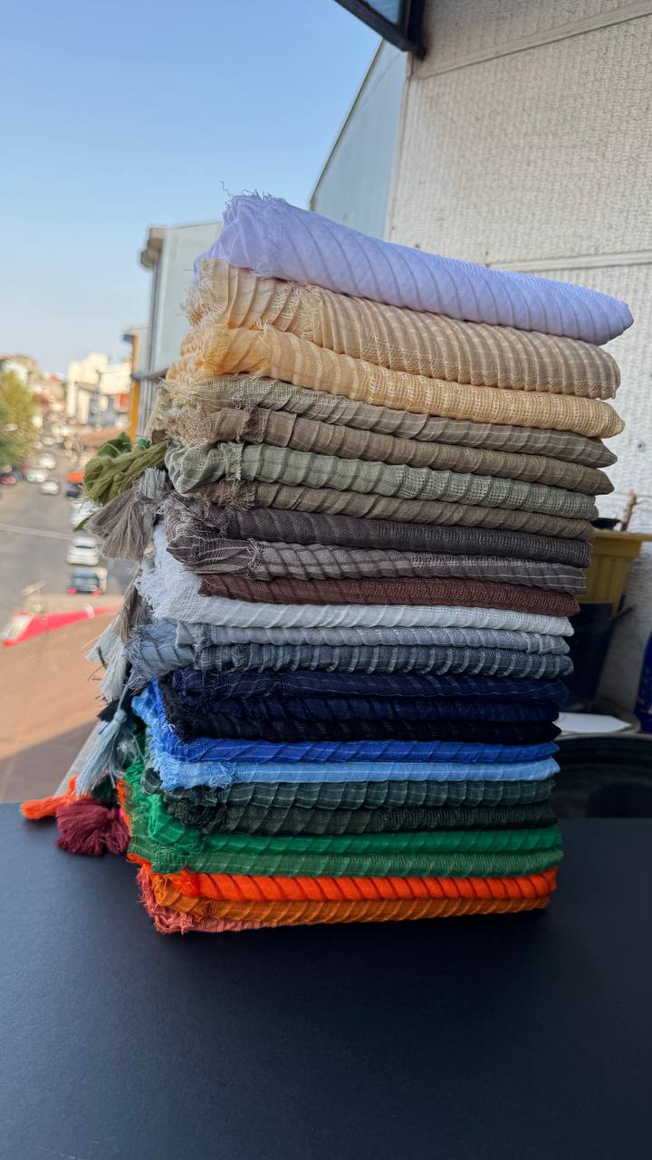 شال نخی پلیسه پارچه حصیری(تکفروشی کد 128)