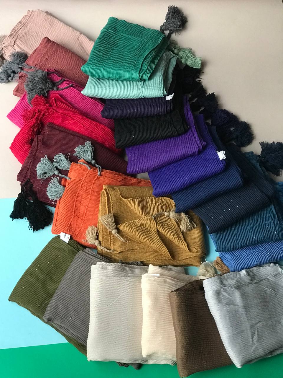 شال پلیسه نخی منگوله دار(تکفروشی کد 174)