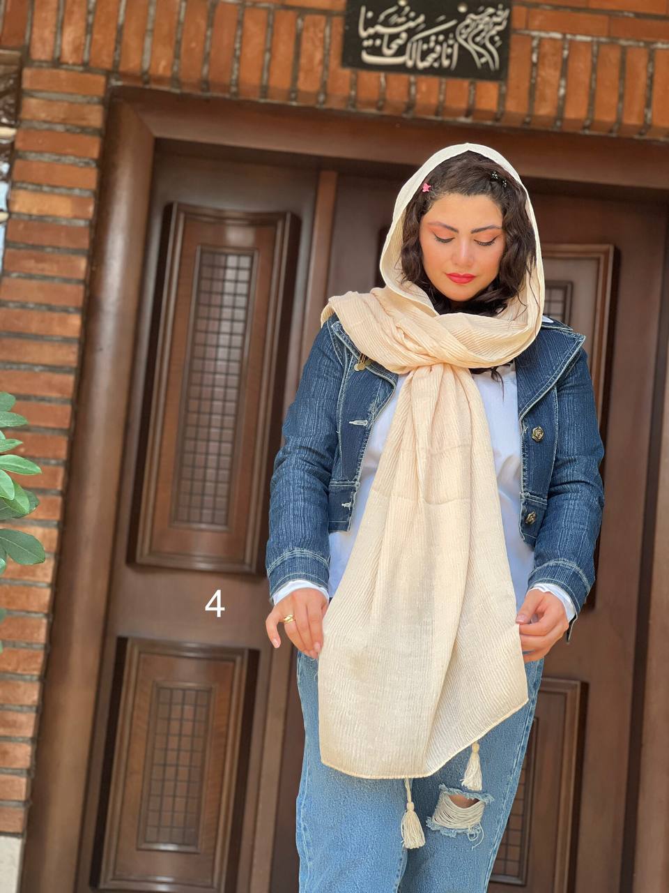 شال نخی پلیسه پارچه حصیری(تکفروشی کد 128)