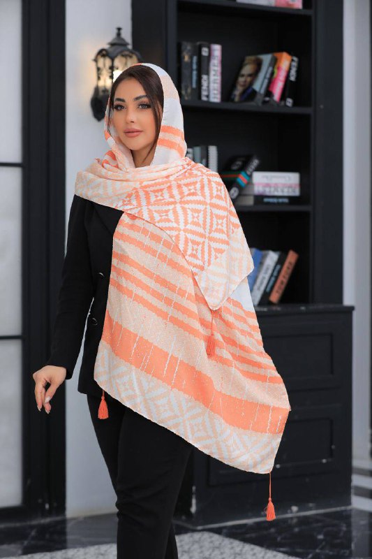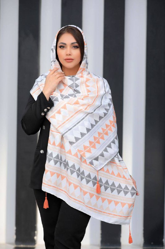 شال تمام نخ کاغذی دم ماهی دور نوار سنگشور (تک فروشی کد 107)