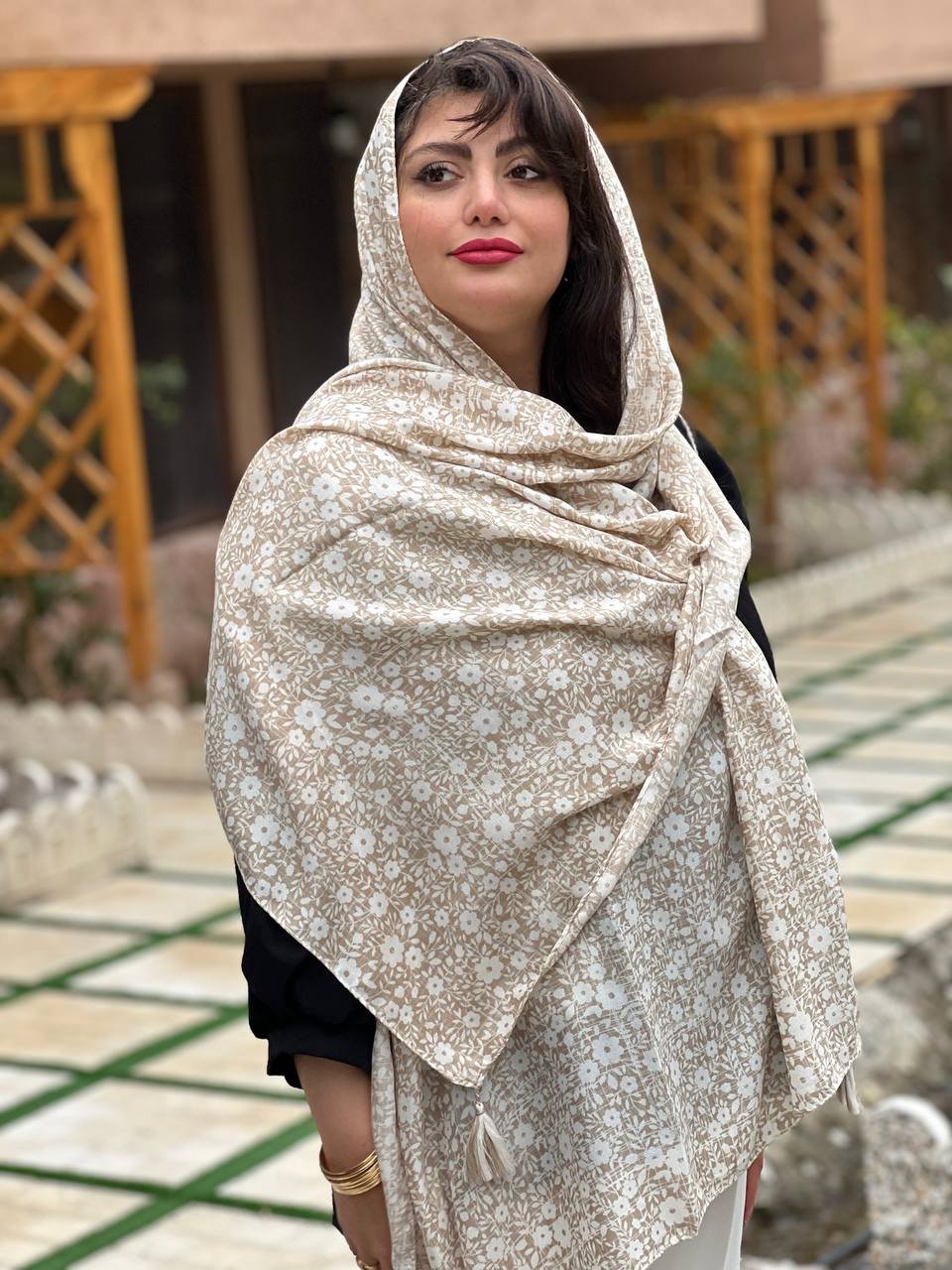 شال تمام نح پارچه سوزنی طرح بیسکوییتی دور ریش (تک فروشی کد ۱۲۴)