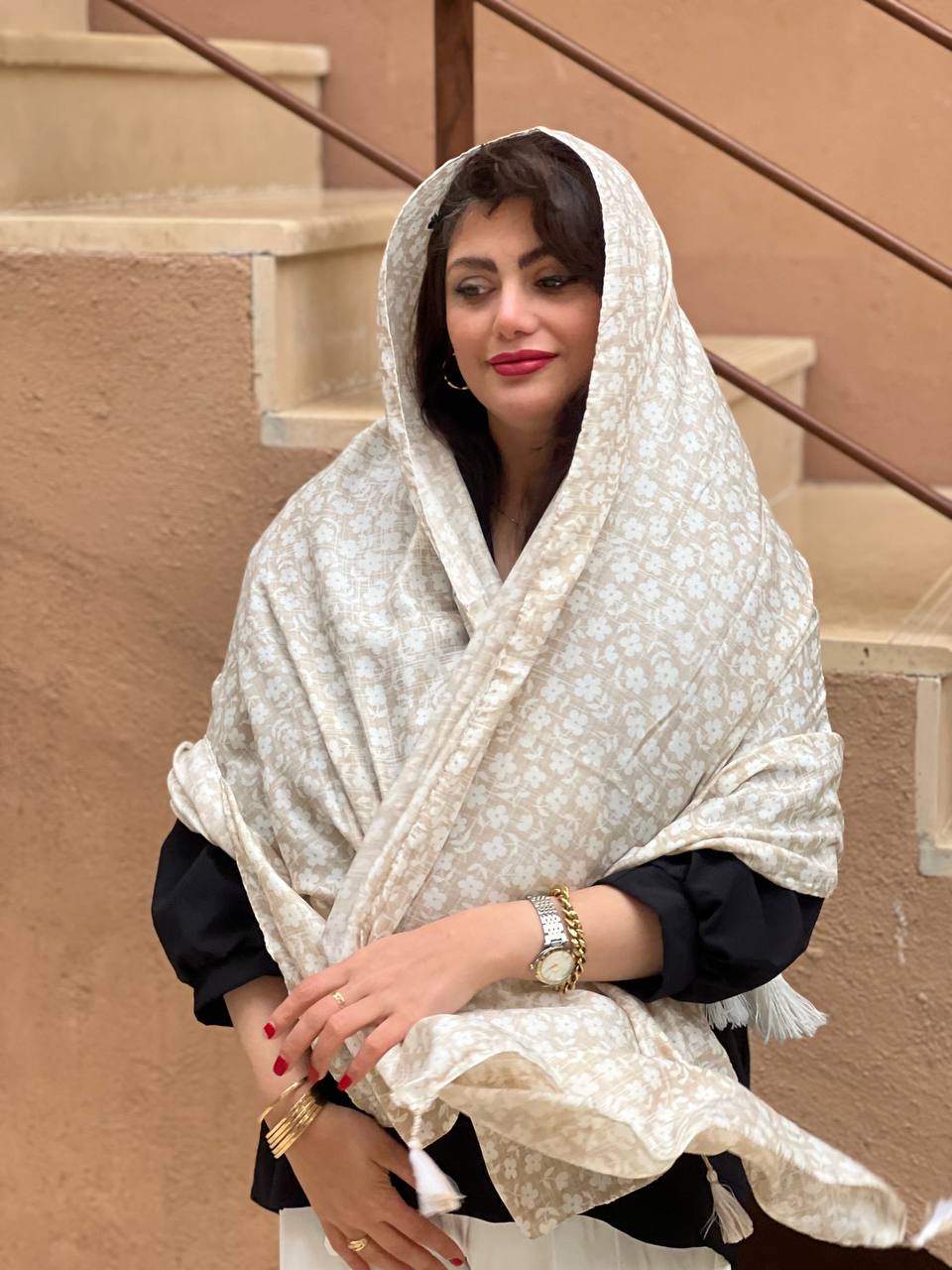 شال ابریشم مجلسی کوپرا نگینی (تک فروشی کد ۱۴۲)