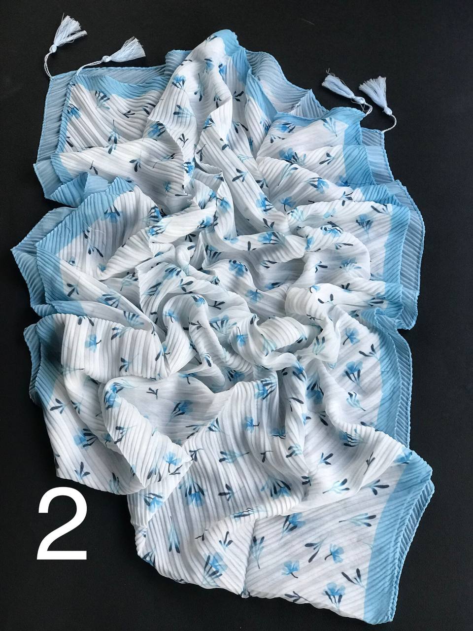 شال پلیسه نخی منگوله دار (تک فروشی کد ۳۲۹)