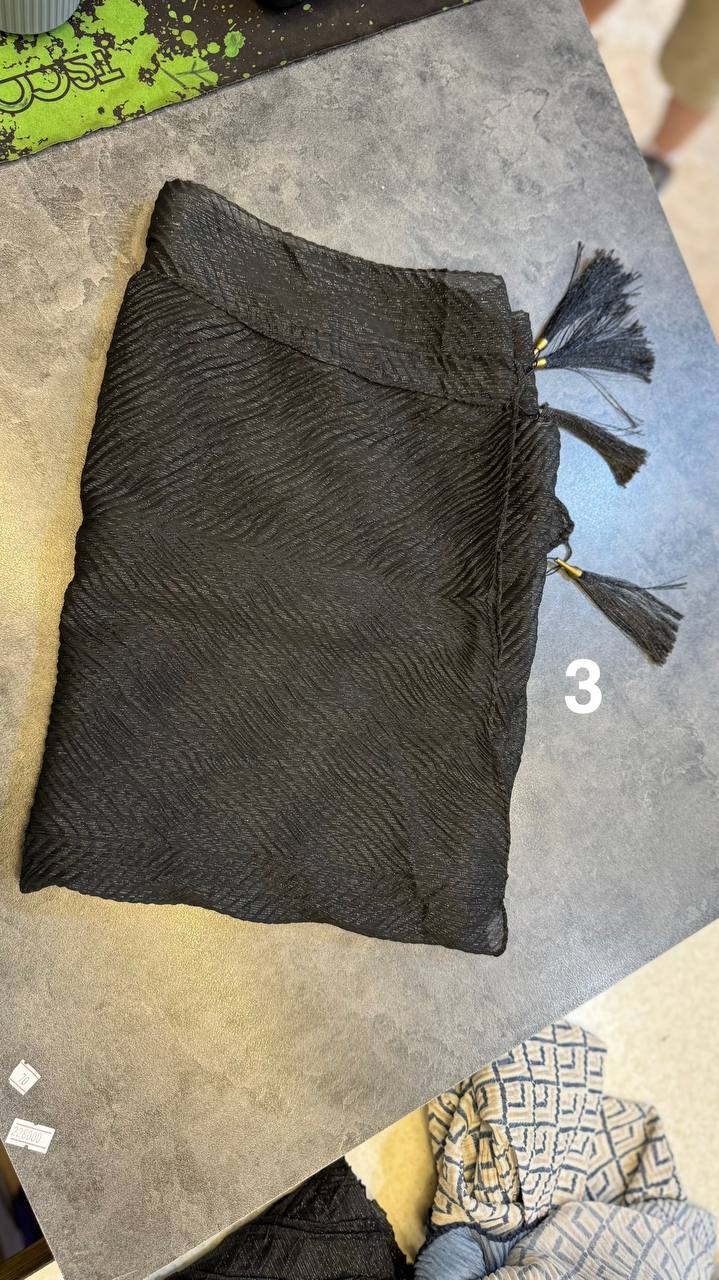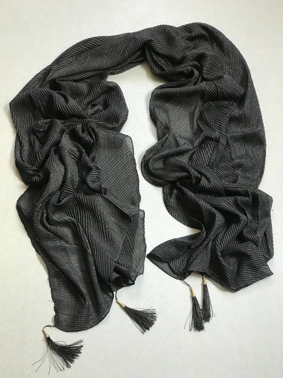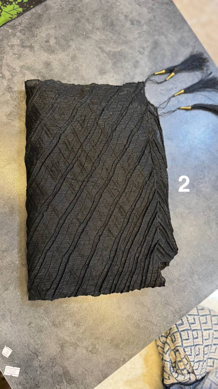 شال پلیسه لمه منگوله دار تک مشکی مجلسی (جین 6 تایی کد 552)