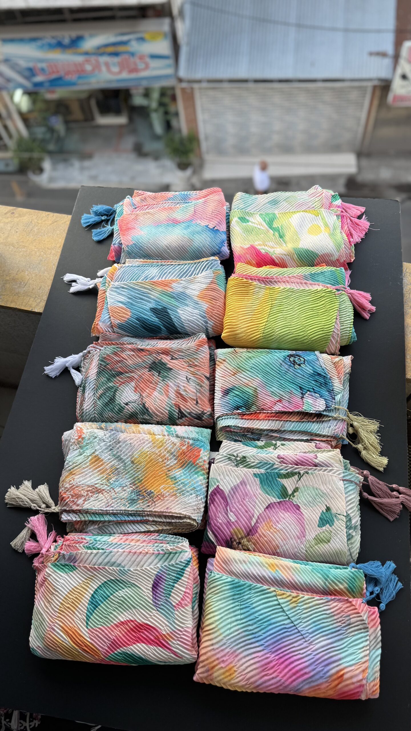 شال نخی پلیسه ابرنگی (جین 10 تایی کد 829)