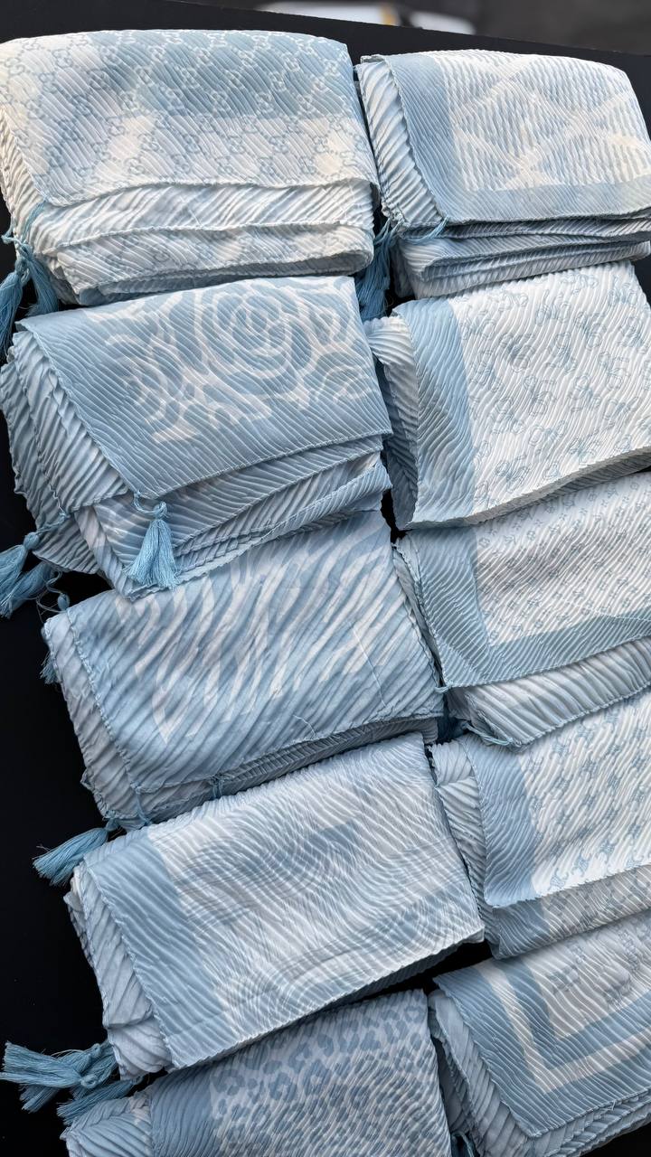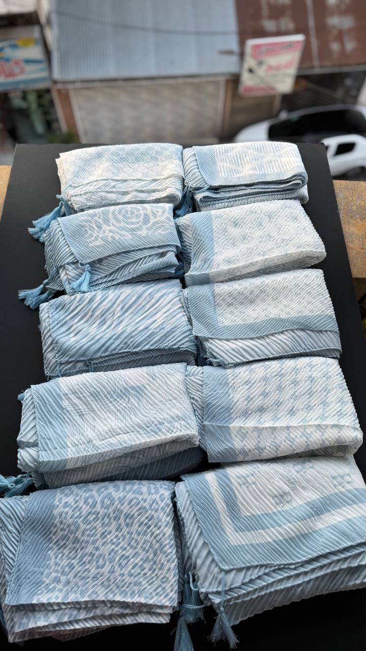 شال نخی پلیسه ابی اسمانی(جین 10 تایی کد 839)