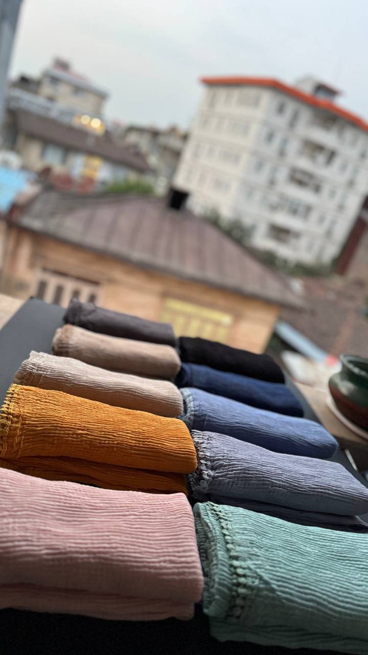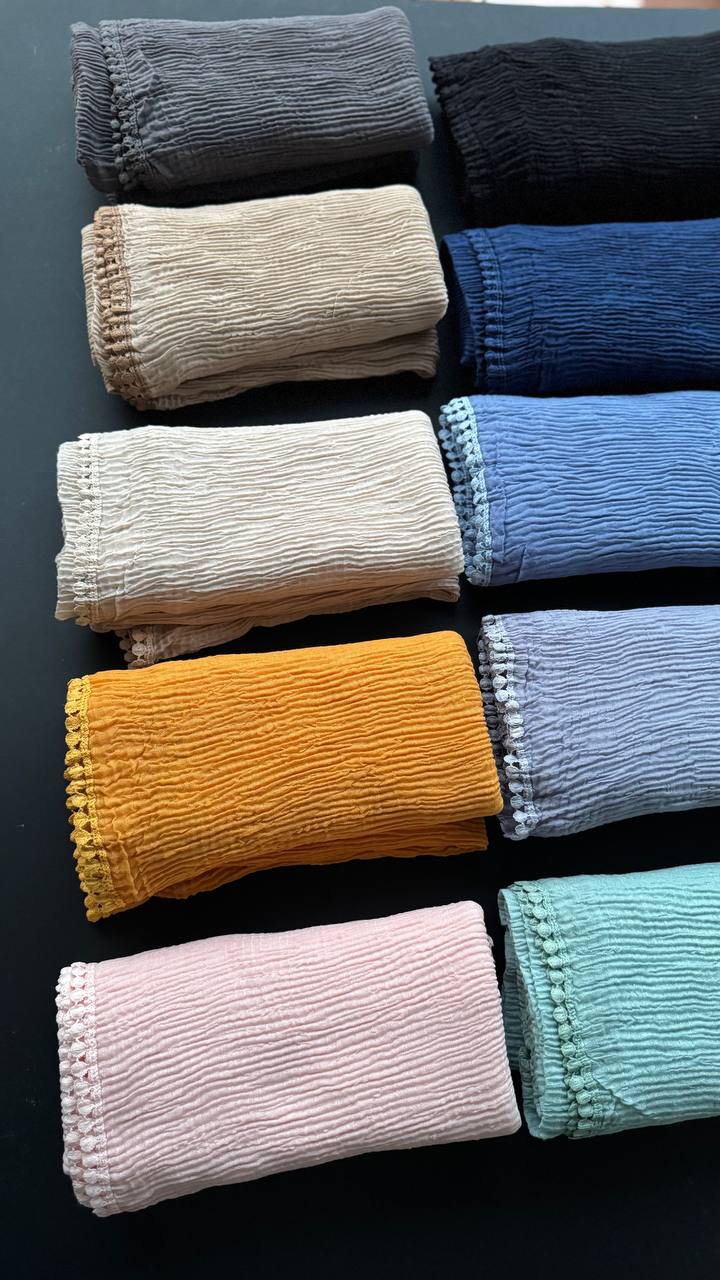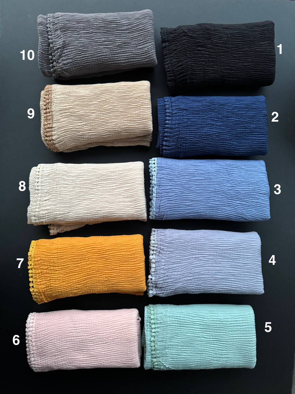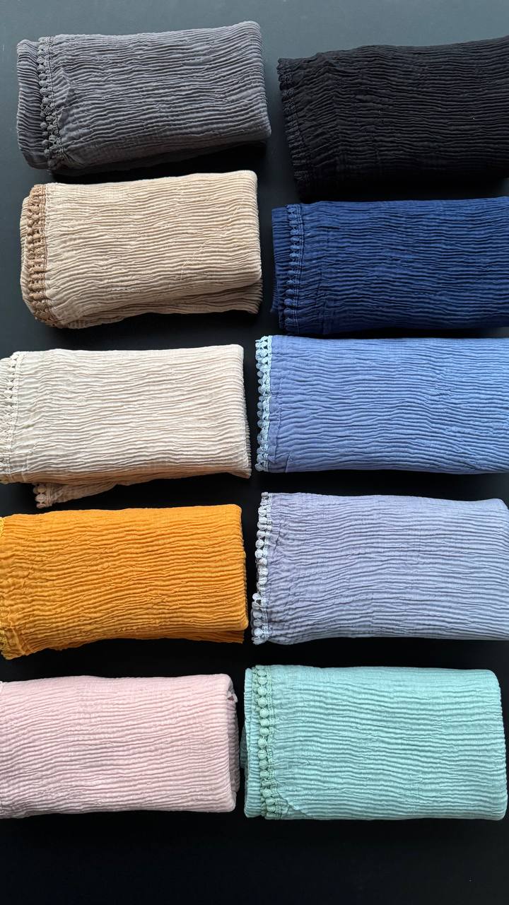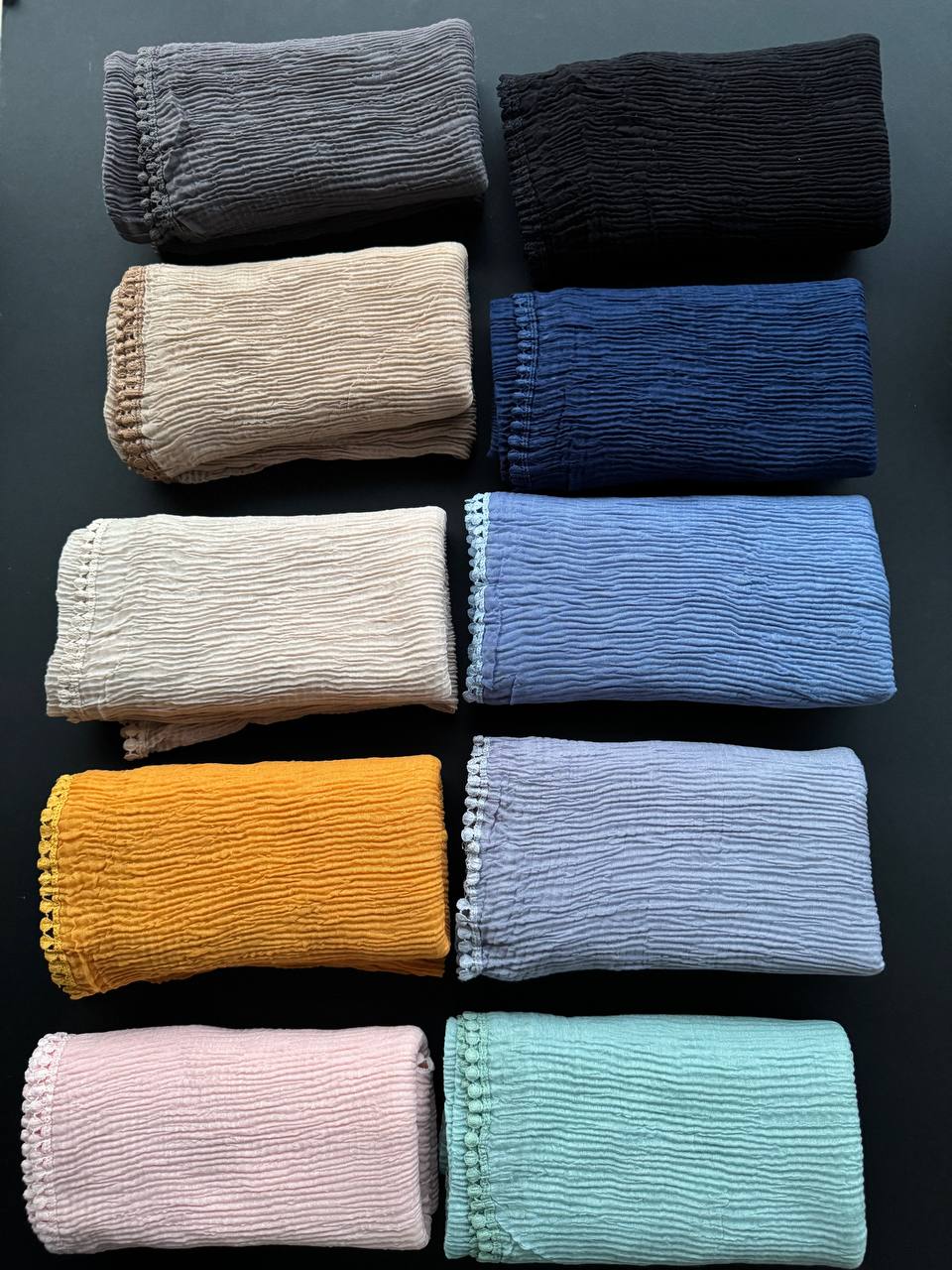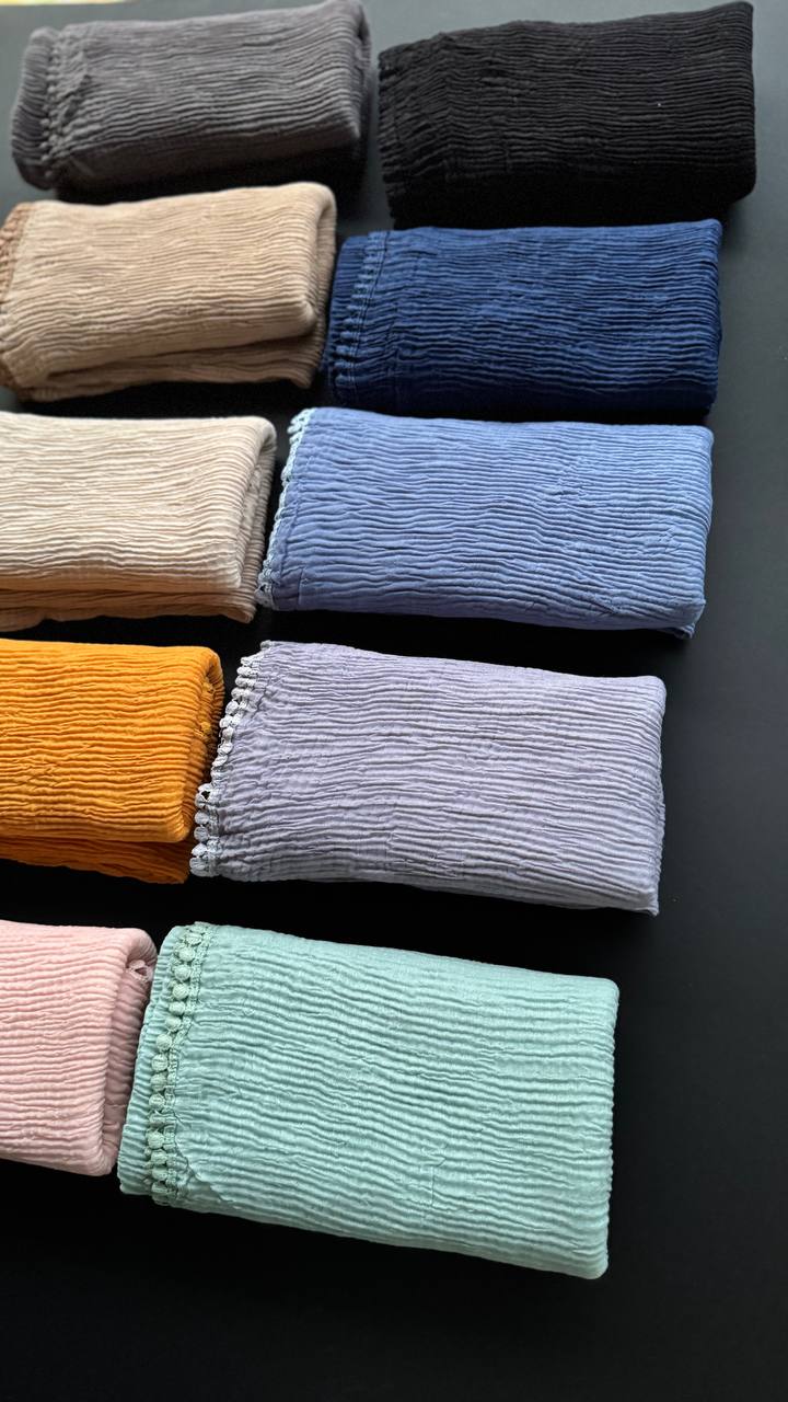 شال نخ برشکا 4 فصل پلیسه وارداتی دور عدسی (جین 12تایی کد 905)