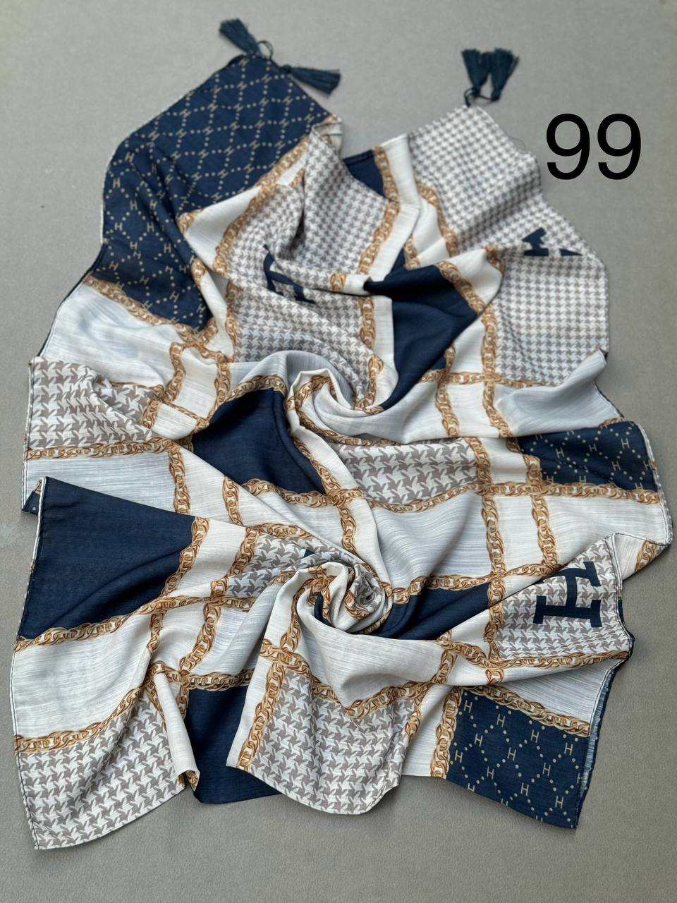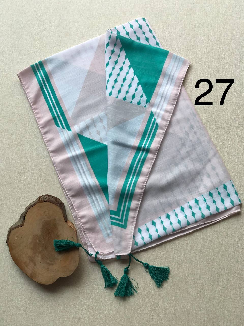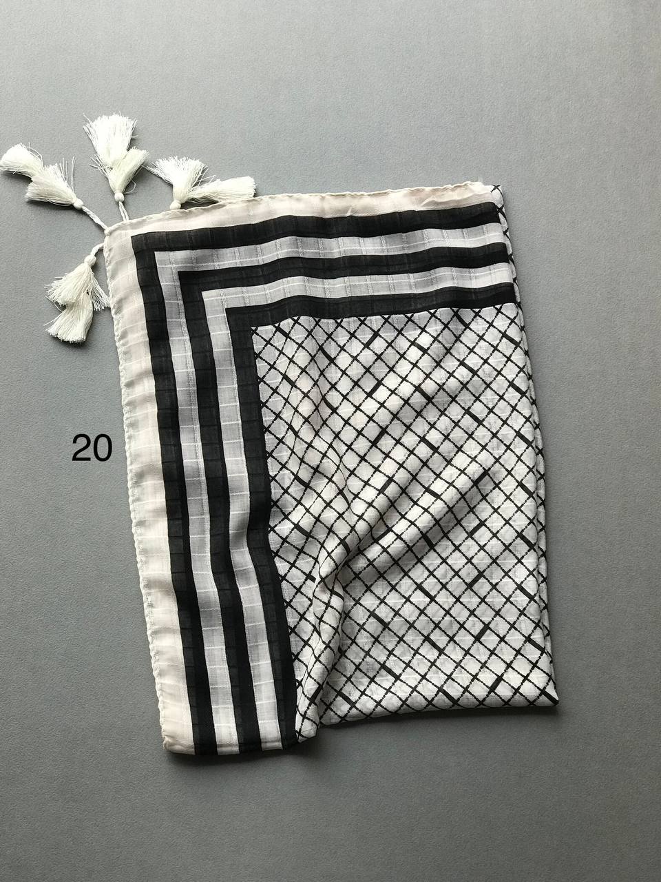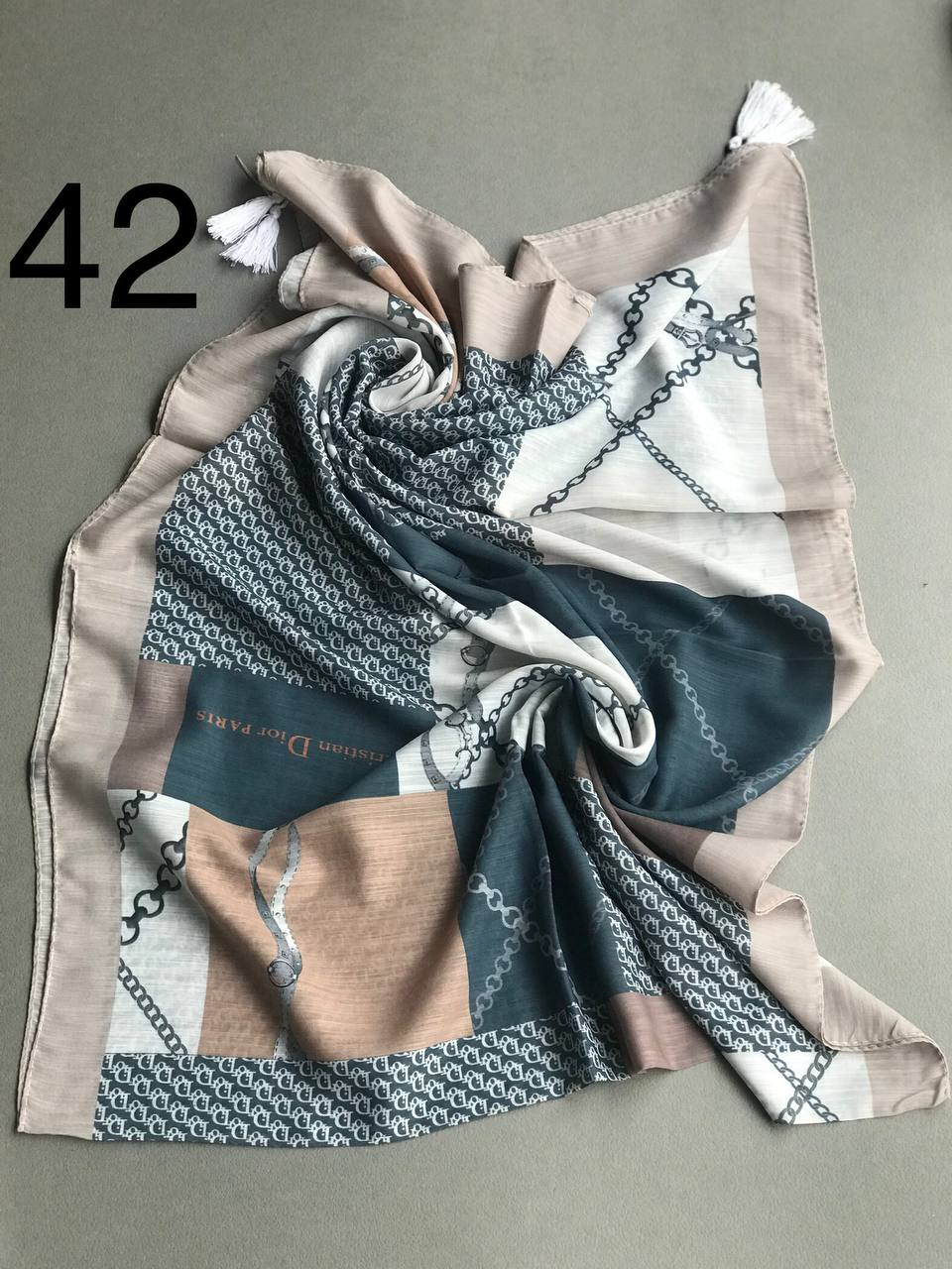 شال تمام نخ کاغذی دم ماهی دور نوار سنگشور (تک فروشی کد 107)