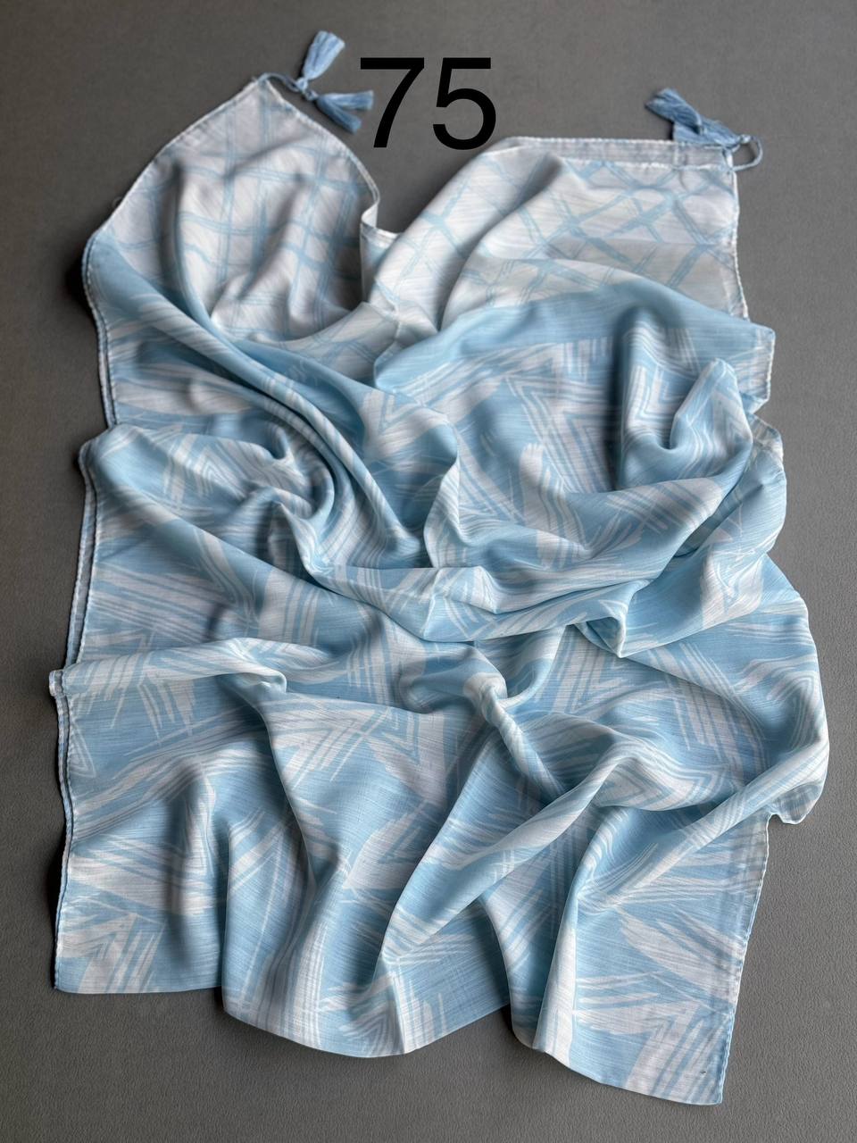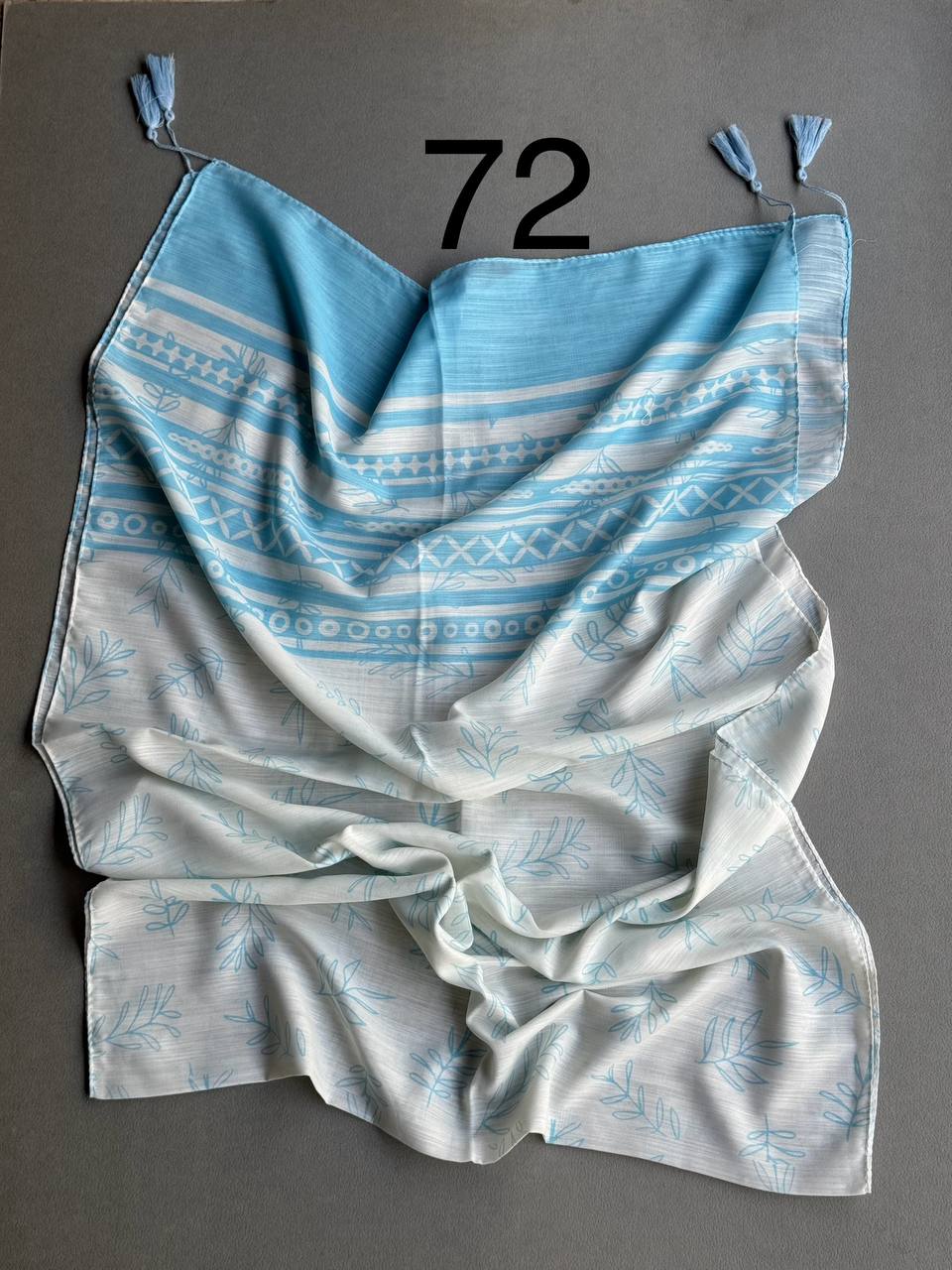 شال پلیسه منگوله سفید توپی نخی چاپی (تک فروشی کد ۱۶۹)