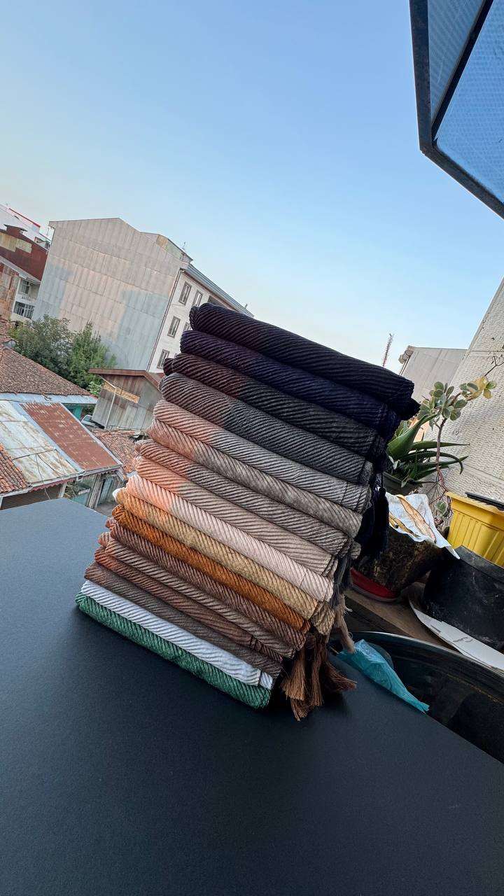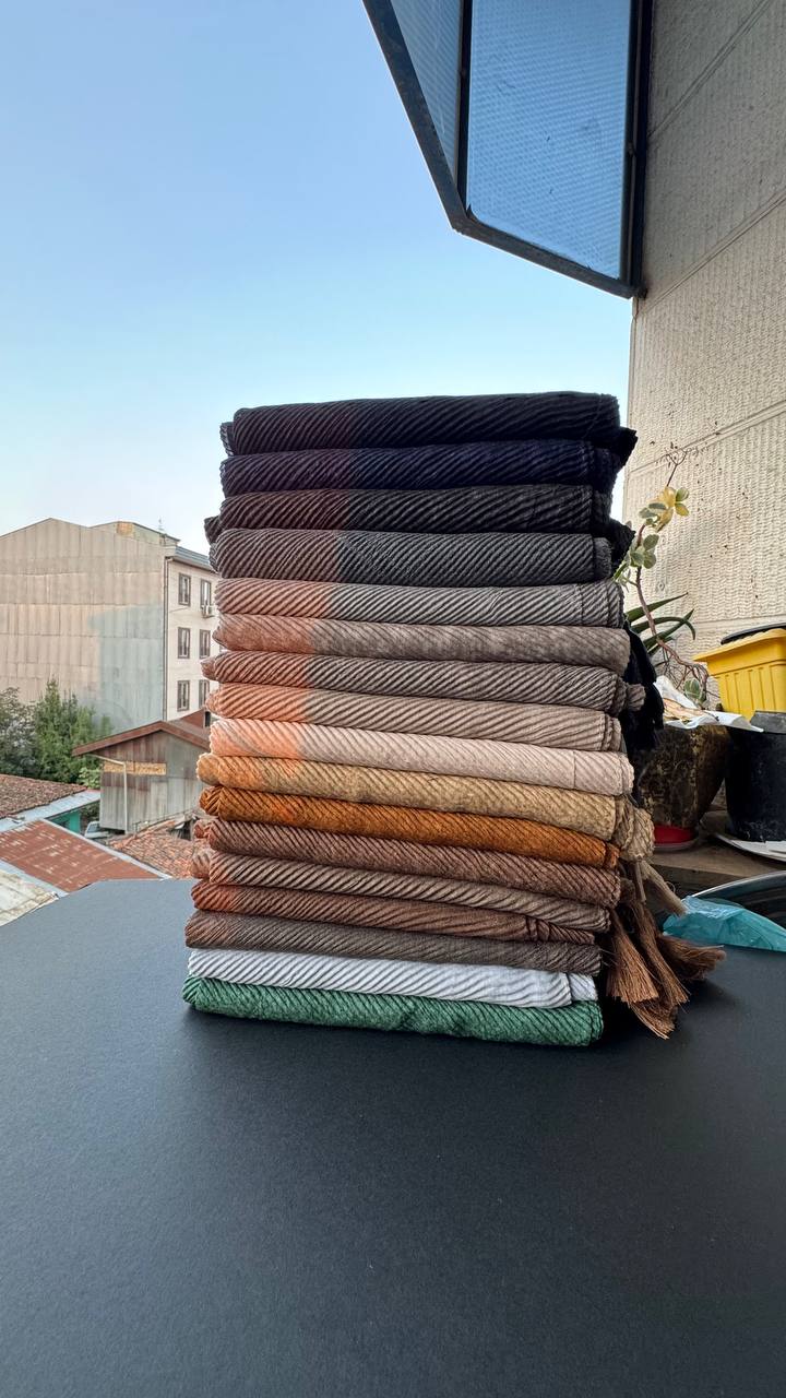 شال پلیسه سنگشور پایین ریش و منگوله نخ پنبه(جین 20 تایی کد 920)